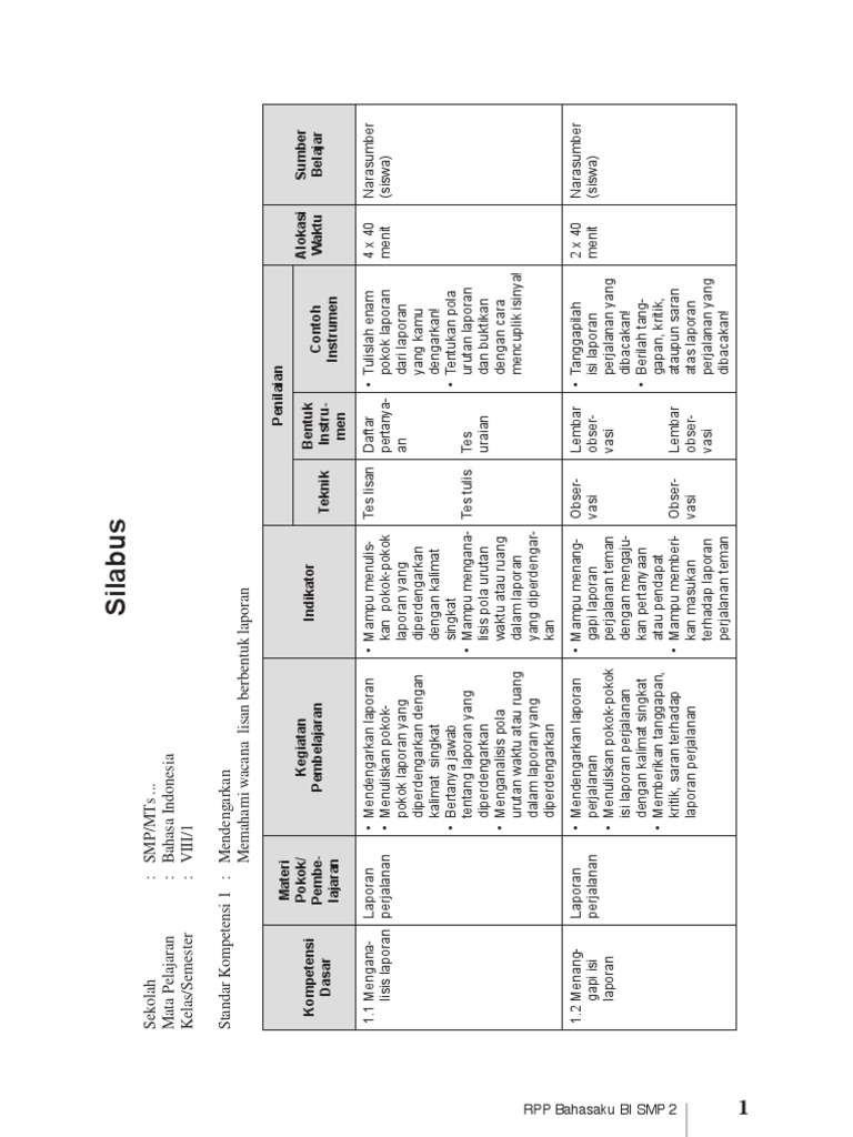 Kursiguru akan membagikan silabus bahasa indonesia kelas 7 dari panduan kurikulum 2013 dan 2006. Rencana pelaksanaan pembelajaran (rpp) adalah hal wajib yang harus dipegang pendidik sebelum melaksanakan pembelajaran. Silabus bahasa indonesia kelas 7 yang digunakan saat ini bersandar panduan dari kurikulum 2013. Silabus dan rpp merupakan perangkat pembelajaran yang wajib dimiliki guru. Untuk anda dan juga para guru yang saat ini mengajar pada.