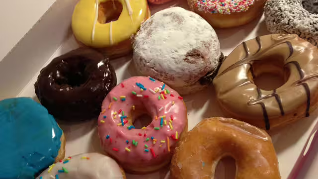 Stop by for an original glazed doughnut or other variety paired with a hot or iced coffee.